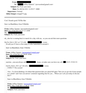 2011年2月にはある人物(下にある写真では黒塗りされていますが)がエプスタイン宛にこのような内容の文面を送っています。