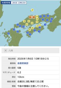 2026年1月6日に島根では震度5の地震が起きました。新年早々大きな地震が起きるなんて災難ではありますね。詳細はこちらです!